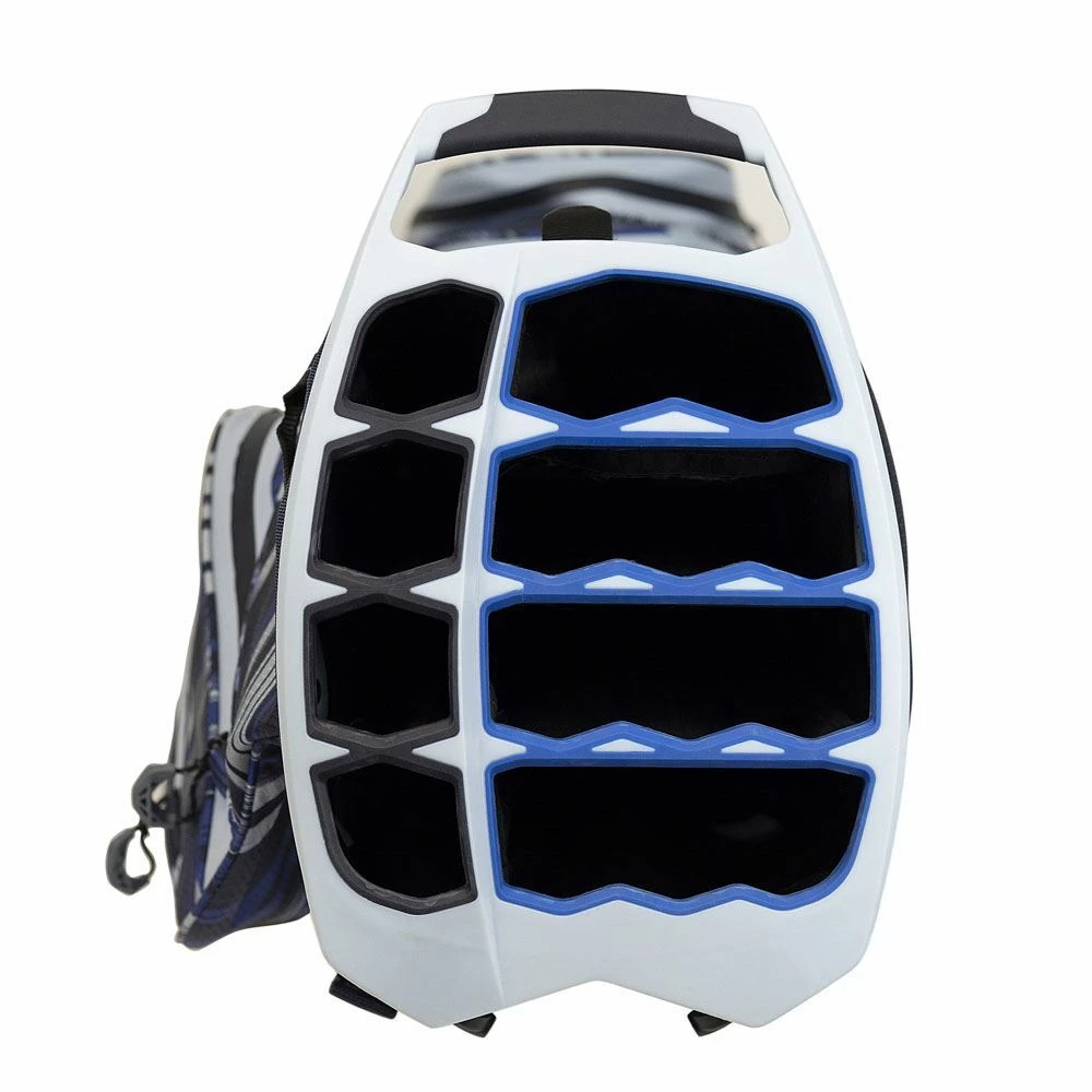 The ALL ELEMENTS Stand bag features waterproof fabric and seam sealed throughout with a premium waterproof valuables pocket to keep all of your electronics dry. The ultimate water-resistant premium 8-way moulded WOODÄ top stand separatesyour woods from your irons, not only making it easier to find the club you are looking for, but also protect your woods. With the innovative ball silo pocket, superb storage options, and in a range of bold and strikingrange of colours, it’s the go to bag for 2022